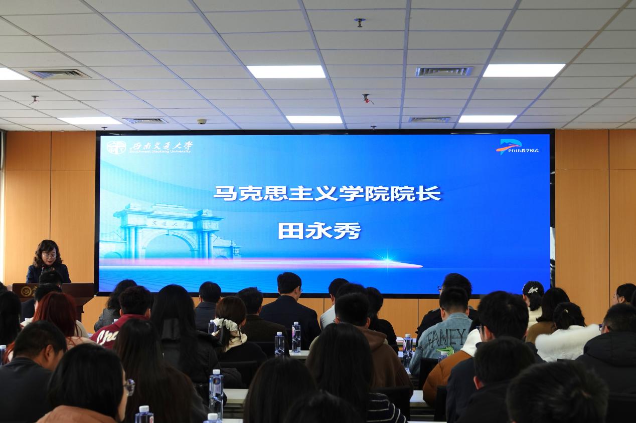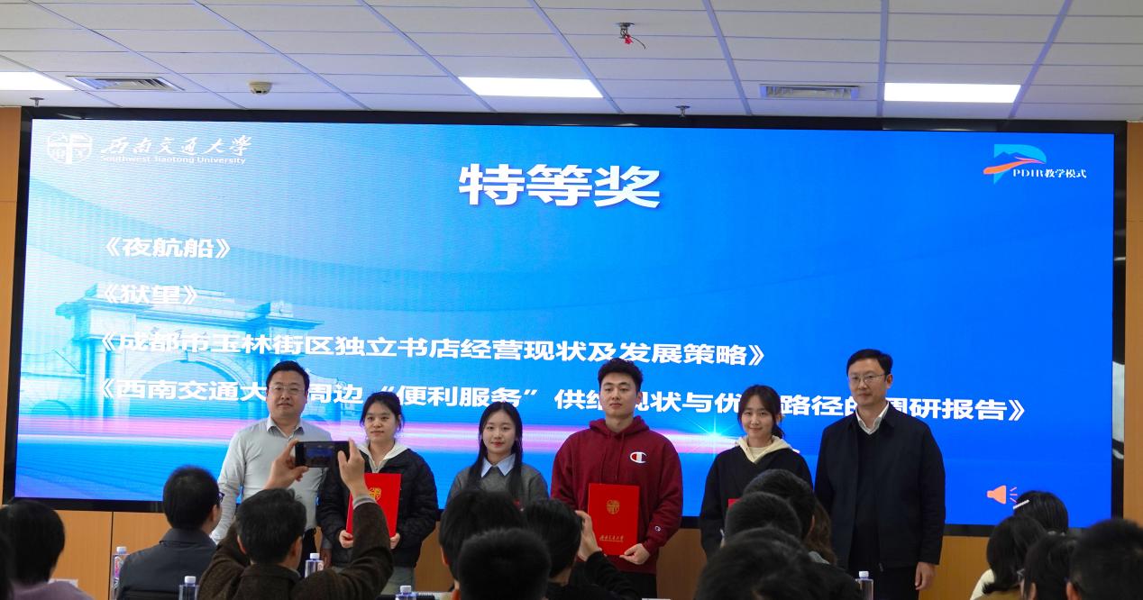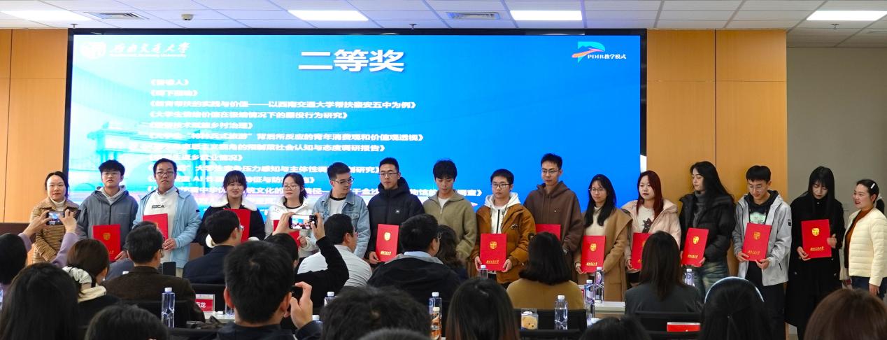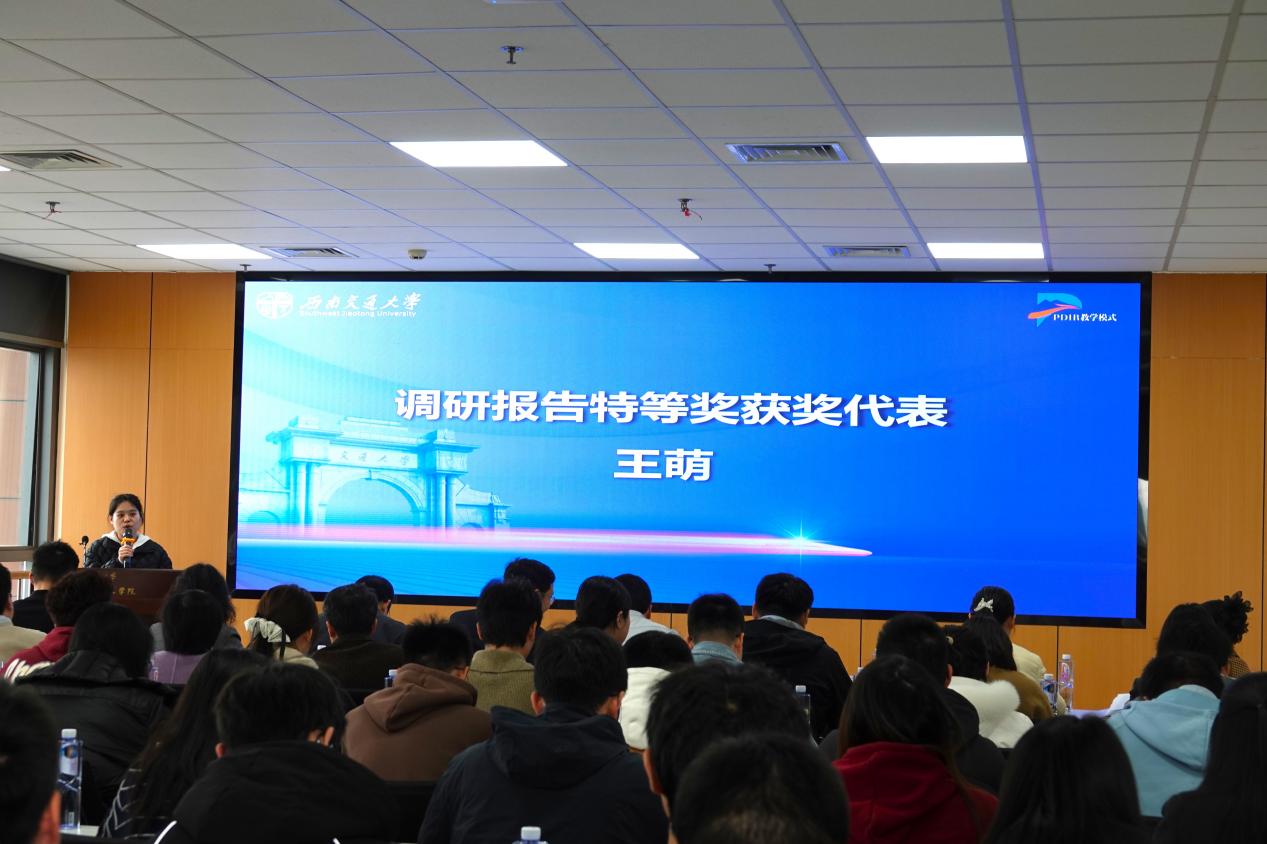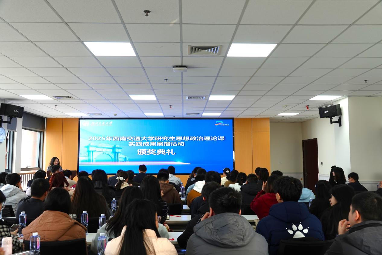 以问题为牵引,以对话为桥梁;以调研求真知,以反思促笃行。12月18日下午,西南交通大学研究生思想政治理论课实践成果展播活动颁奖典礼在犀浦校区3号教学楼1325会议室隆重举行。党委宣传部副部长郑波,研究生院副院长华宝玉、研究生培养办公室副主任吴双,马克思主义学院党委书记廖军、院长田永秀、副院长王菁、副院长谢瑜,以及部分研究生思想政治理论课教师与获奖学生代表参加活动。典礼由马克思主义学院副院长谢瑜主持。